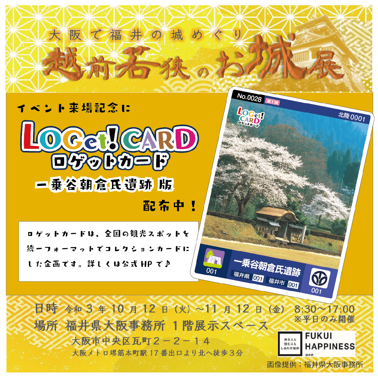 なんと!福井県の「一乗谷朝倉氏遺跡」が、イベント期間限定で、大阪にて配布されます♪